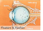 Floaters and flashes are sometimes associated with retinal tears. When the vitreous shrinks it can pull on the retina and cause a tear. A torn retina is a serious problem. It can lead to a retinal detachment and blindness. If new floaters appear suddenly or you see sudden flashes of light, see an ophthalmologist immediately.
